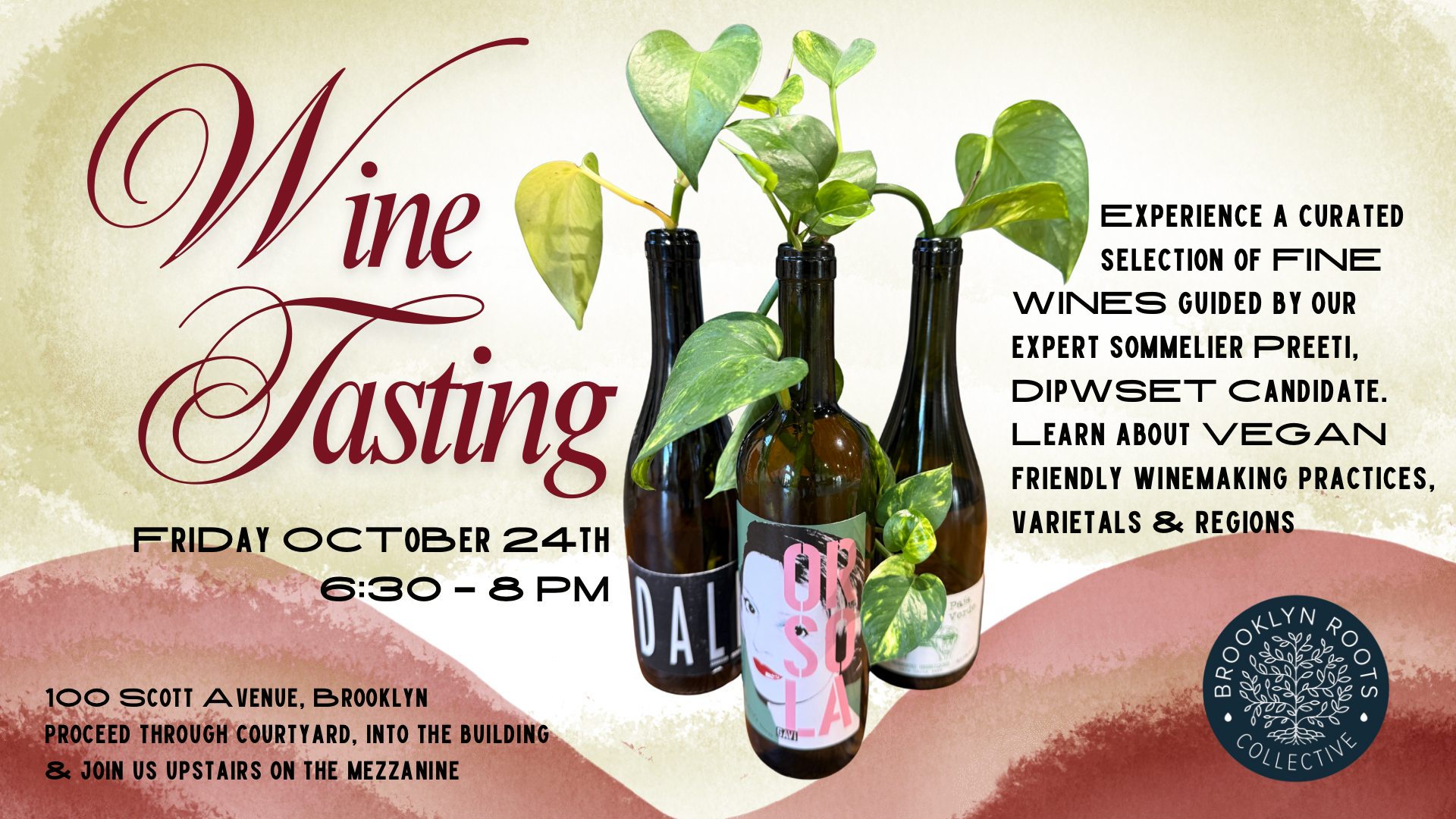 Join us on the mezzanine level of Brooklyn Roots Collective for a tasting of our signature garden to glass cocktails/mocktails, paired with a variety of delicious vegan cheeses provided by Kind Kitchen. You will have the opportunity to learn about the flavor profiles of several drinks and cheeses, and the ingredients used to make these impressive vegan cheeses.